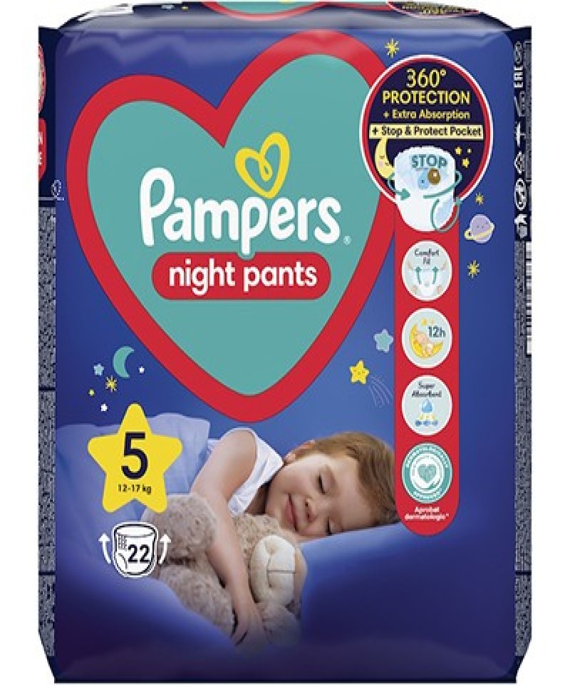 Scutece-chilotel de noapte Pampers Night Pants, Marimea 5, 12-17 kg, 22 buc